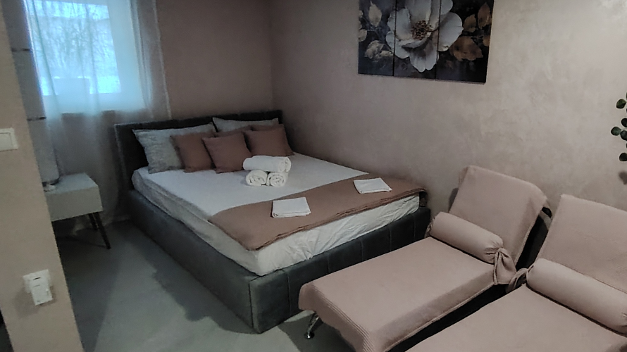 Wellness studio nudi možnost nočitev za 2 osebi. Opremljen je z mini kuhinjo in jedilnico, dvema počivalnikoma, udobno posteljo 140×200, klasično kotno kadjo in IR savno. Studio se nahaja v mirnem okolju v bližini letališča Brnik in je odlično izhodišče za izlete v naravo.